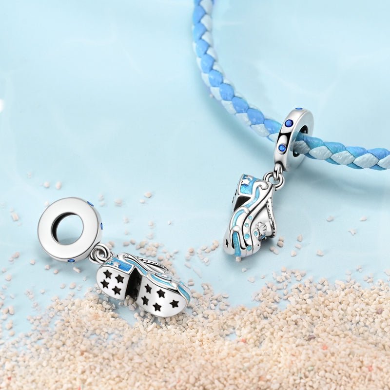 The Blue Slipper with Seashells & Stars Dangle Charm by Pangama Jewelry combines elegance with a touch of oceanic charm. Crafted from 925 sterling silver, this enchanting slipper features delicate seashell and star designs, accented with shimmering blue stones. It’s a perfect piece for those who dream of coastal adventures or the soothing calm of the sea.