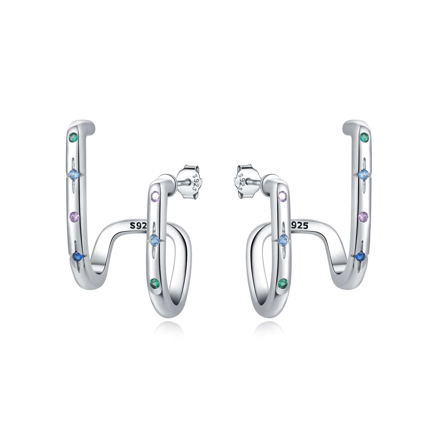 Elevate your style with our Celestial Curve Sterling Silver Hoops. Crafted with supreme quality 925 Sterling Silver, these Pangama Jewelry Earrings add a touch of elegance to any outfit. Expertly designed for comfort and durability, these hoops will effortlessly elevate your look. Treat yourself or a loved one now.