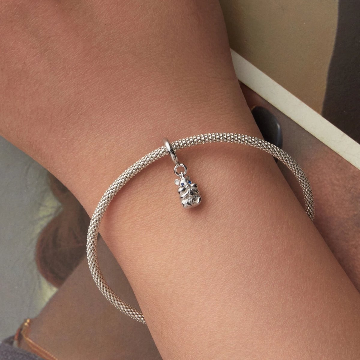 Bring a touch of playful charm to your jewelry collection with the Chubby Hamster with Blue Eyes Dangle Charm by Pangama Jewelry. Crafted from 925 sterling silver, this delightful charm features a plump little hamster with puffed cheeks and sparkling blue eyes, perfectly capturing its curious and cuddly nature. With lifelike detailing and a joyful expression, it’s a heartwarming tribute to one of the cutest companions.
