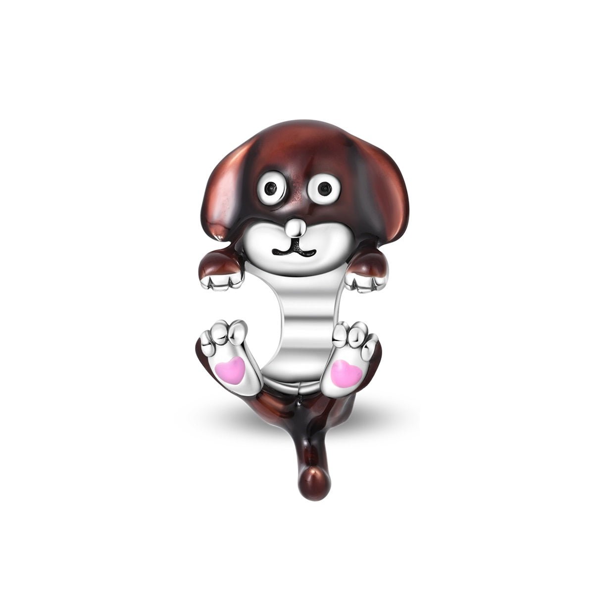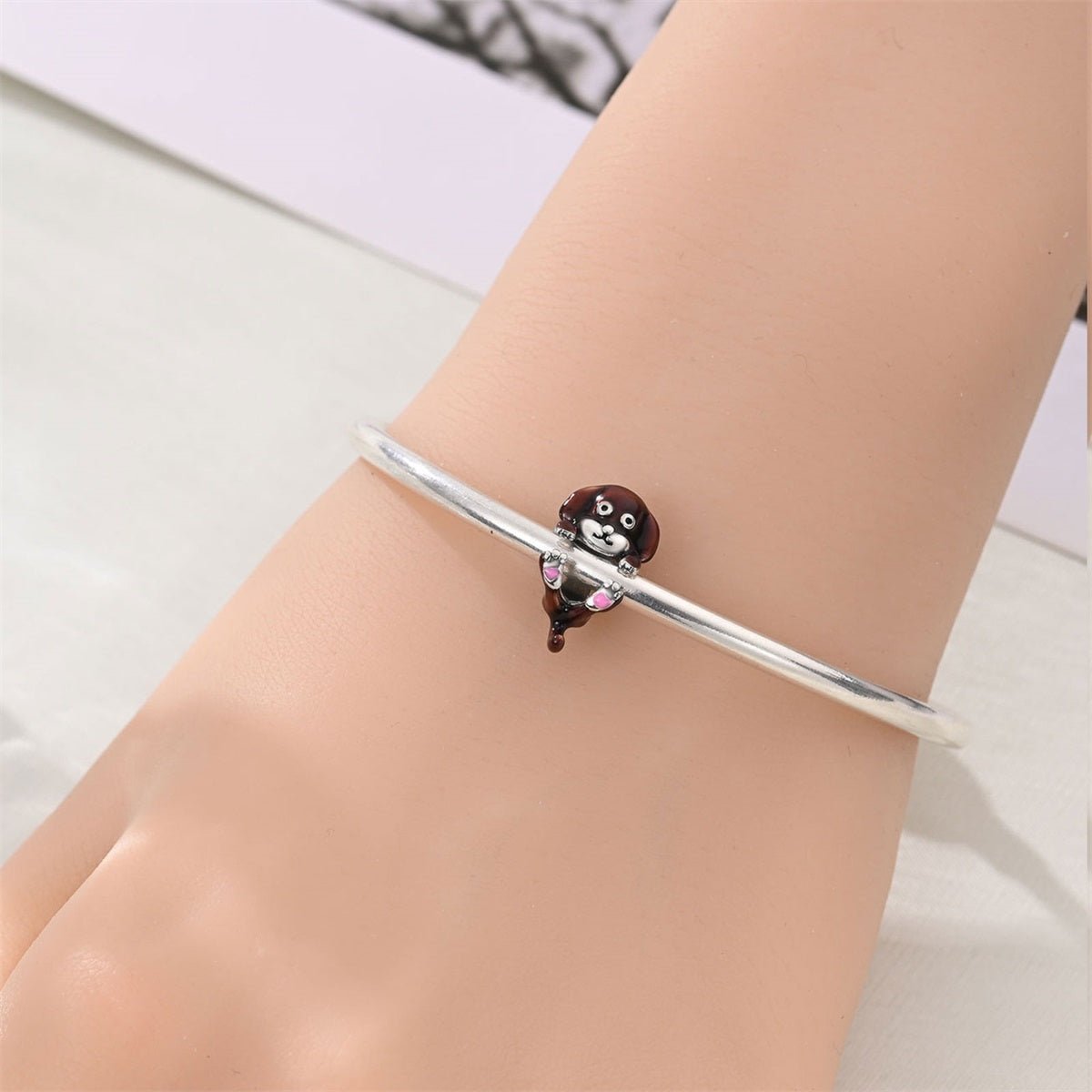 Add playful energy to your bracelet with the Hanging Brown Dog Charm by Pangama Jewelry. Crafted from 925 sterling silver, this adorable brown pup clings onto your bracelet with sweet pink paw pads and wide-eyed charm. Its swinging pose and lovable face bring joy and movement to your collection, making it an instant favorite for dog lovers.