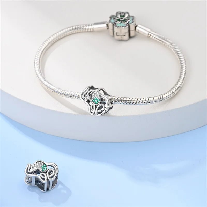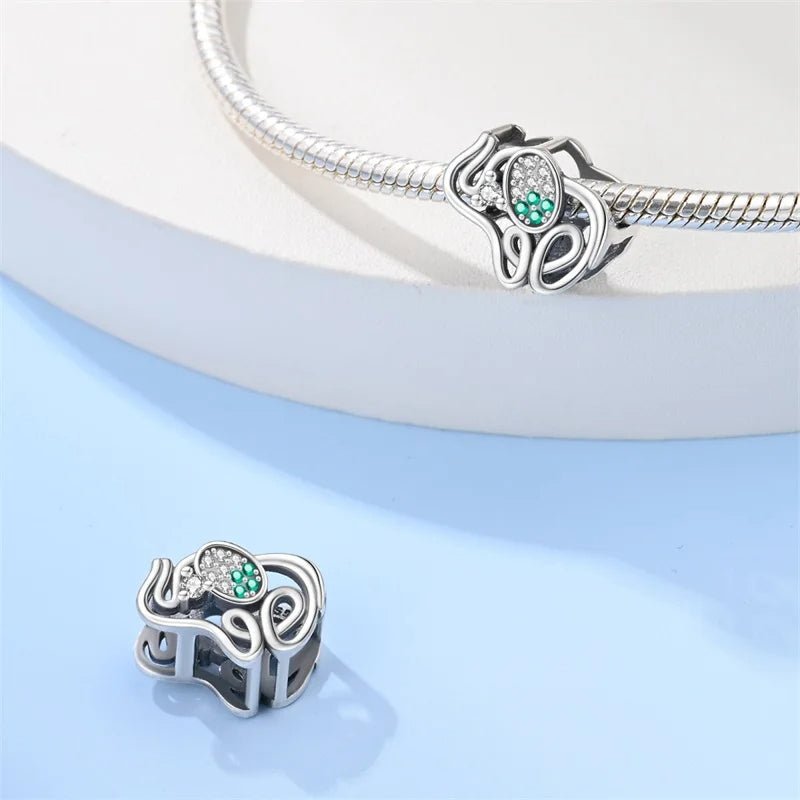 Celebrate strength and wisdom with the Openwork Elephant Charm by Pangama Jewelry. Crafted from 925 sterling silver, this intricately sculpted charm features a flowing openwork design shaped into a graceful elephant. Its ear sparkles with clear and green stones, adding life and color to its symbolic form. With a modern artistic twist, this charm brings meaningful style to your bracelet.
