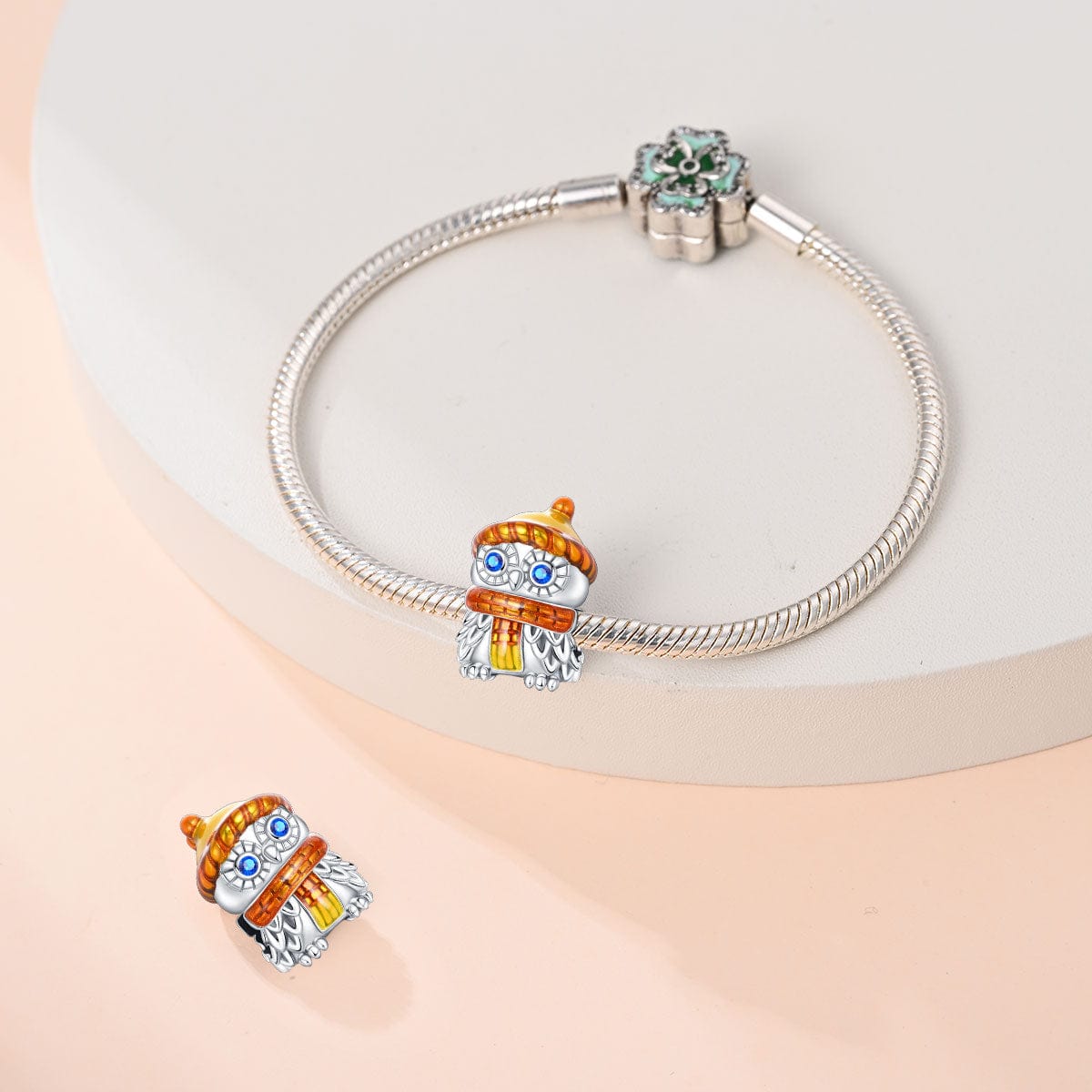 Embrace the cozy charm of the Owl Charm with Scarf and Beanie by Pangama Jewelry. Crafted from 925 sterling silver, this adorable owl charm wears a scarf and beanie, offering a playful, winter-ready look.