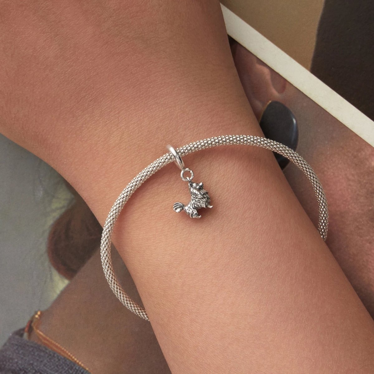 Celebrate your love for loyal companions with the Pomeranian Dog Dangle Charm by Pangama Jewelry. Expertly crafted from 925 sterling silver, this charm showcases the distinctive fluffy coat and proud stance of a Pomeranian in fine detail. From its curled tail to its alert expression, it’s the perfect tribute to the charm and confidence of this adorable breed.