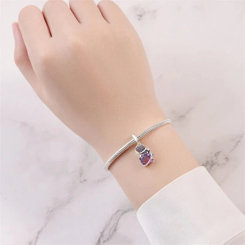 Embrace the magic of the universe with the Romantic Universe Theme Stars Murano Glass Purple Heart Dangle Charm by Pangama Jewelry. This 925 sterling silver charm features a Murano glass heart with swirling purple hues and shimmering stars, representing the beauty and mystery of the cosmos.