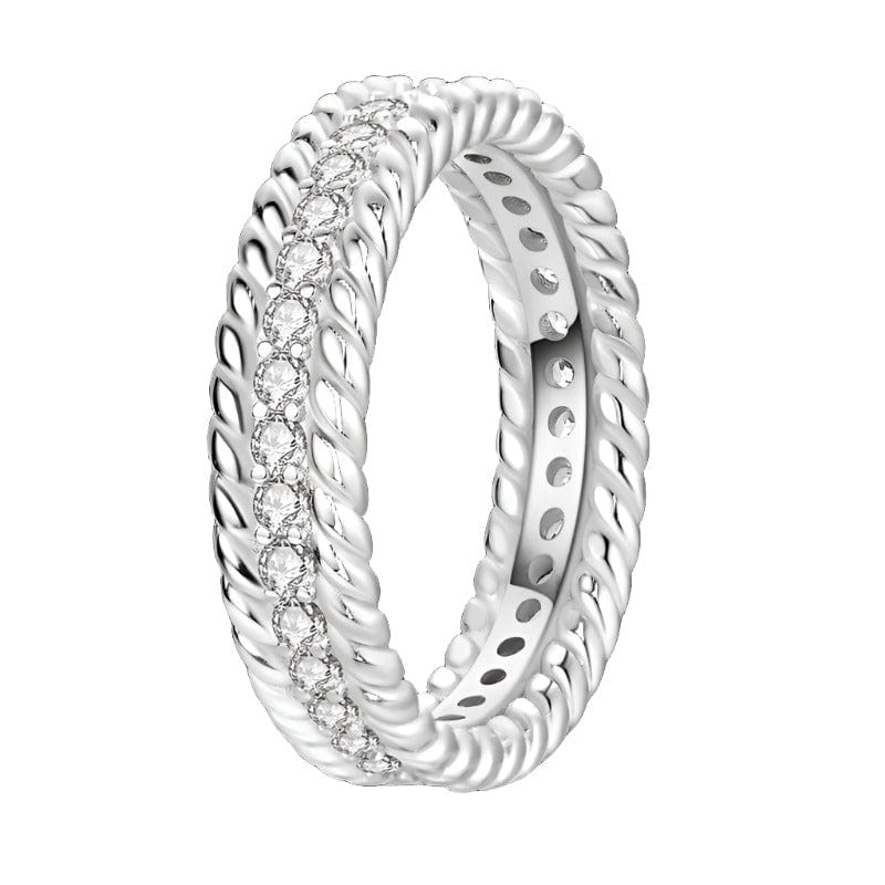Rope Design Sterling Silver Ring with Dazzling Crystals