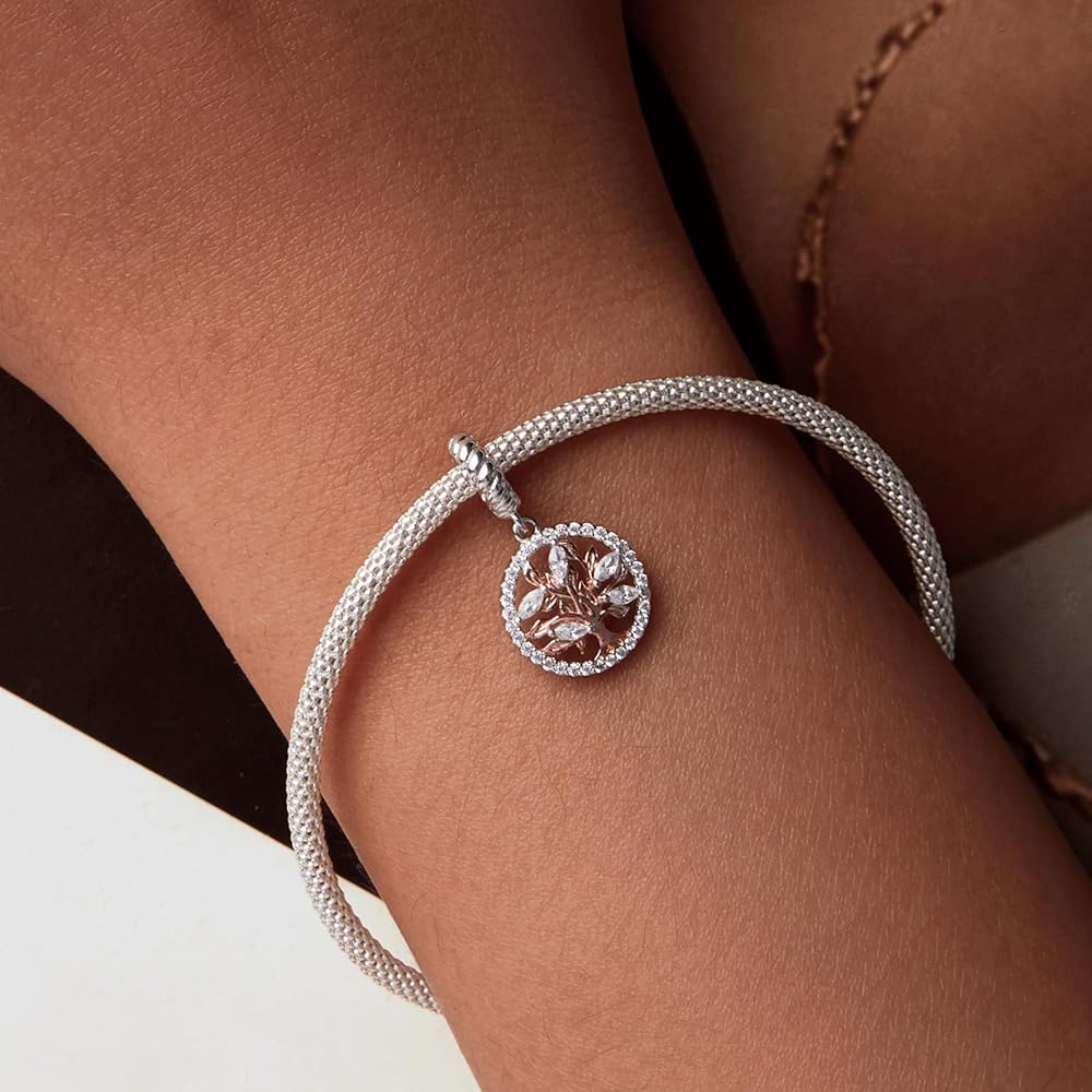 Celebrate strength, growth, and eternal connections with this stunning Rose Gold Tree of Life with Sparkling Crystal Halo Dangle Charm by Pangama Jewelry. Crafted from 925 sterling silver and accented with intricate rose gold branches, this charm symbolizes deep roots and new beginnings. The surrounding crystal halo adds a radiant sparkle, representing the beauty of life’s journey. A timeless piece filled with meaning, this charm is perfect for those who cherish family, wisdom, and personal growth.